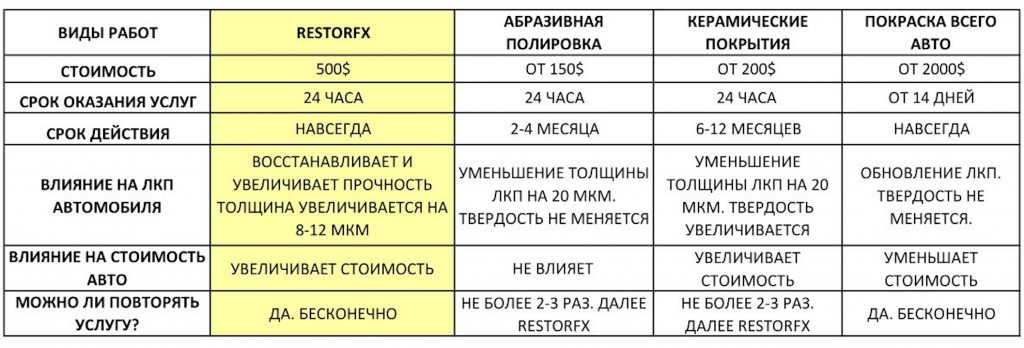 RestorFX — за счет наращивания лака на 10 микрон возратит ЛКП вашего автомобиля состояние нового.