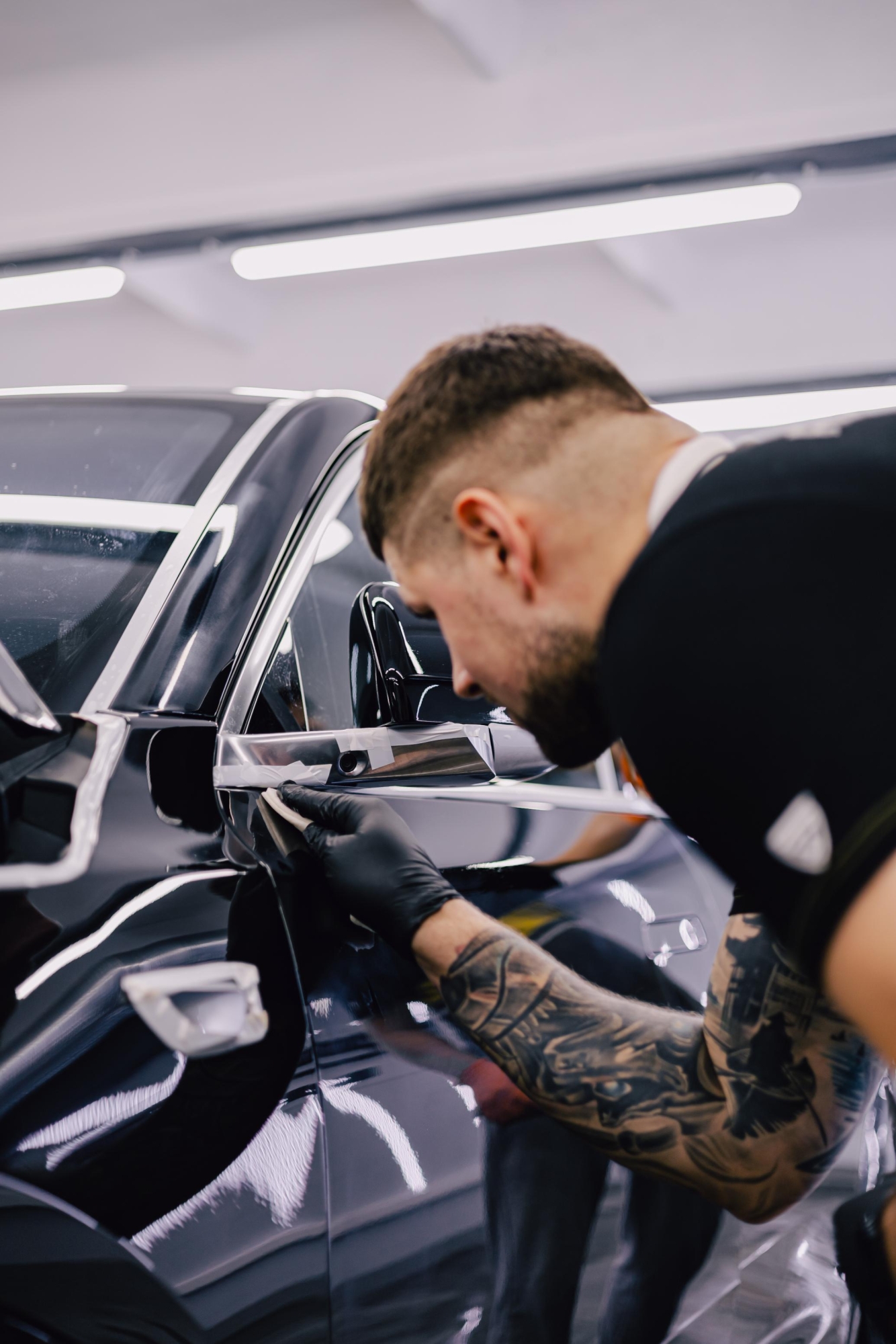1. Первый этап занимает 10-12 часов, в него входят мойка автомобиля, поэтапная очистка и обезжиривание кузова, маскировка резиновых элементов и некрашеного пластика защитными материалами